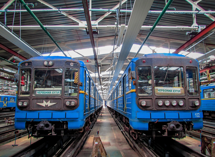 Первый кадр из депо метрополитена - мирно отдыхающий на канаве номерной - 81-717.5М