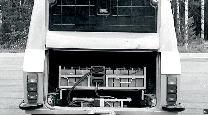 В 1980 году в Москве выпустили электрический микроавтобус РАФ‑2910 для Олимпиады. Сама машина не участвовала в процессе зарядки: погрузчик извлекал разряженные батареи и ставил заряженные. Позже автобус был передан в НИИ источников тока в Ашхабаде и оборудован солнечными батареями на крыше в попытке создать более легкий и ёмкий аккумулятор. Однако запас хода остался прежним – 100 км, и проект закрыли как неперспективный.