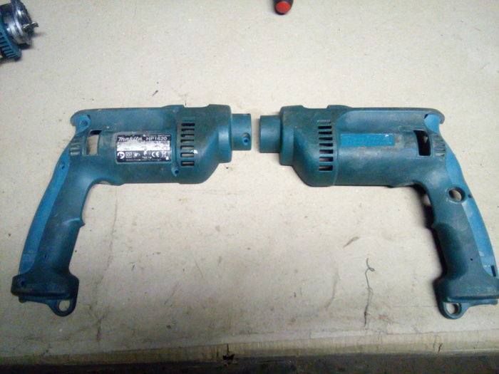 5. Навинчиваем патрон, зажимаем сверло. Устанавливаем вторую половину корпуса, она держится на четырёх винтах. Крышка отсека батареек удерживается за счёт силы трения, снимается довольно туго.