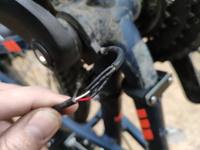 Третий провод (красный) просто изолируем и не будем использовать. Он необходим в случаях, когда на тормозах установлены датчики Холла.