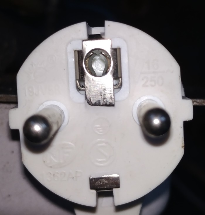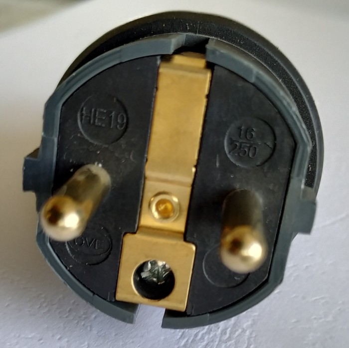 Мы видим там контакты для заземляющего штыря. В России розетка с заземляющим штырем встречается одна на миллион. Делаем вывод: вилка сделана специально под Россию и не соответствует стандартам DIN