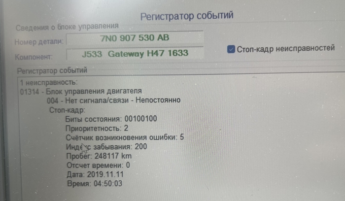 После того как двигатель заглох, вышли очень интересные ошибки.