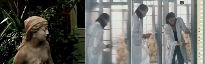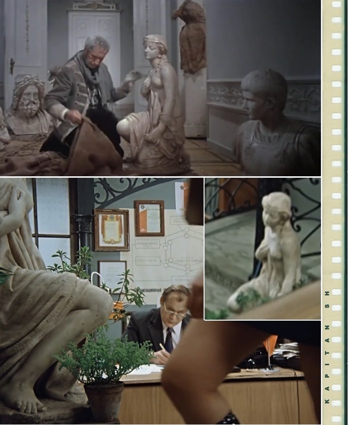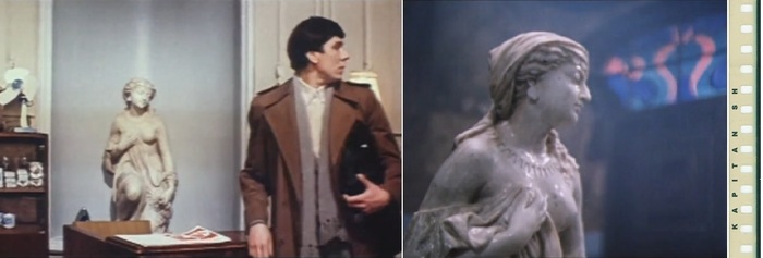 Надо сказать, что для статуи фильмография получилась не малая. Конечно же самая известная, можно сказать, главная «роль» ей досталась в фильме «Формула любви», 1984 год.