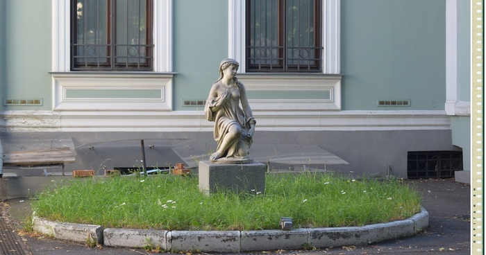 Когда мы видим сей прекрасный образ на экране, то поневоле из недр памяти всплывают цитаты: «Прасковья Тулупова», «Барин на нее как глянул, так умом и поехал» «Она тоже женщина несчастная, она Графа любит». По некоторым данным эта скульптура была из коллекции немецких трофеев, которые хранились на Мосфильме.