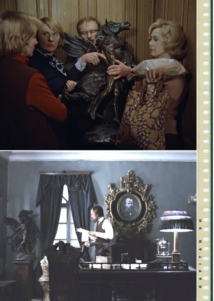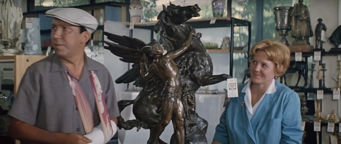 Кстати, еще одну копию статуя Персея и Пегаса подарили Людмиле Ивановой, исполнительнице роли активистки Шуры.