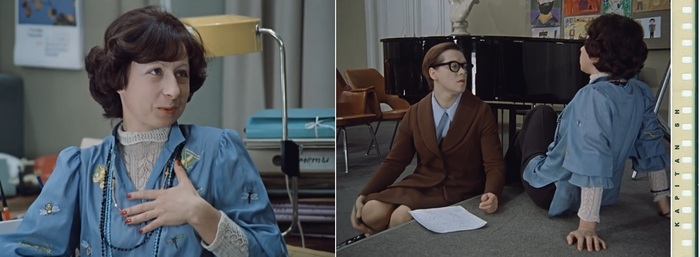 Рязанов: «Алиса Бруновна совершила, с моей точки зрения, актерский подвиг, на это способна только очень крупная актриса. Понимаете, она… От нее требовалось вообще не слыханное мужество, потому что в начале героиня абсолютно должна быть бесполым, унылым, очень плохо одетым существом, Которое не то, что не должно было вызывать симпатию, оно должно было вызывать скорее отвращение или отторжение. Это параграф, а не женщина. Она себя не пожалела, она себя поуродовала так, что… Вспомните, какая это жуткая это прическа, этот безликий коричневый костюм из Москвашвея, причем уже давно старого Москвашвея причем даже для тех пор. Какие-то немыслимые туфли, блузки, манера держаться. Это просто такой сухарь… Нет ни одного полового признака просто-напросто. Понять, что это женщина невозможно. И вообще это там не имеет никакого значения. Это существо хотелось назвать местоимением оно. Понимаете, это не он, не она, это оно! И это требовало от артистки, которая бросилась в эту роль, ну невероятной веры, что она сможет это преодолеть, понимаете?»