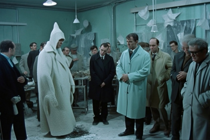 Вроде незаметная деталь, но что стоит на столе у Калугиной? Горячие споры разгораются на тему Apple II или Videoton-340, а возможно видеосвязь.