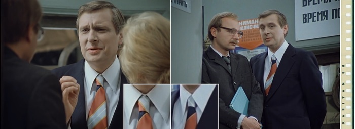 Подобные метаморфозы происходят позже и с другим галстуком Самохвалова, в сценах, где он просит Верочку вызвать Шуру, и где он передает письма Рыжовой. Но там есть время между эпизодами и можно сказать, что он взял и перевязал галстук.
