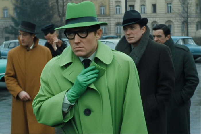 Калугина просит проконсультировать Веру по современной моде, и в кадре мы видим у секретаря ярко красный маникюр, но к моменту, когда они переходят в зал, цвет ногтей снова становиться бледным.