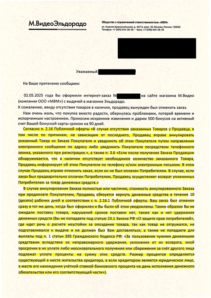 В общем ранее не покупал в эльдорадо и после этого случая не куплю никогда там. Может быть конечно конкретный магазин обмудков попался, но проверять я больше не буду. Почему то с м-видео таких проблем никогда не возникало, хотя контора то вроде одна и та же.