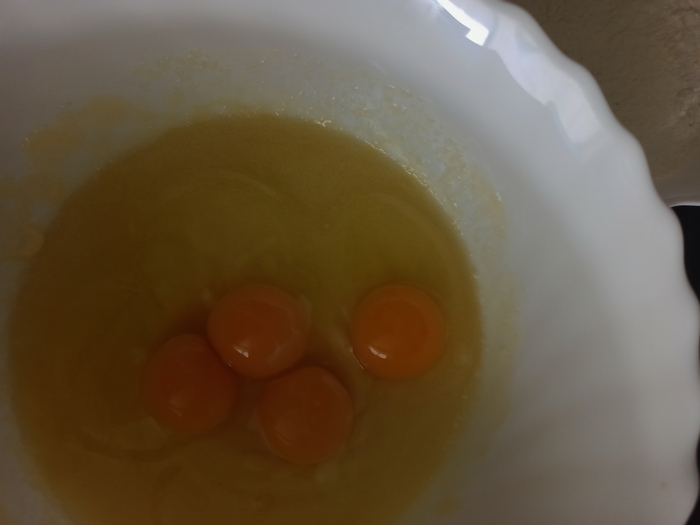 В смесь понемногу добавляем муку. Тесто по консистенции должно получиться как густая сметана.
