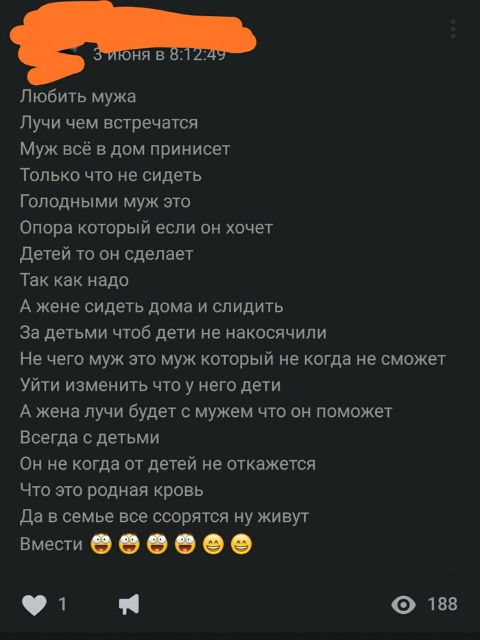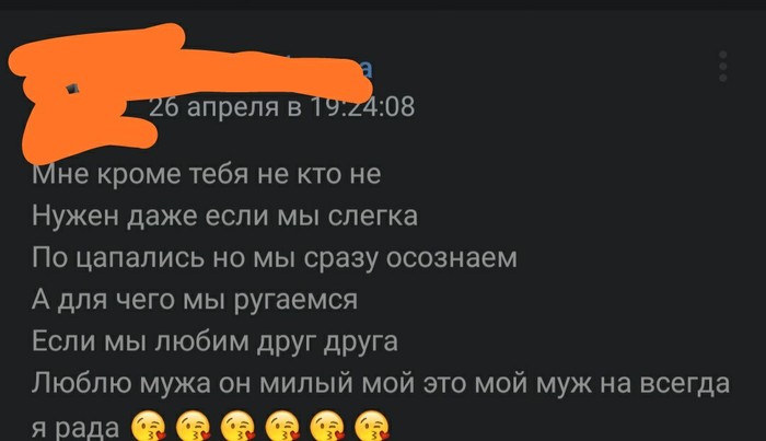 Одним дождливым вечерком сидел и тихо-мирно пил чай, скроллил ленту вк, и в одном паблике (что за паблик не важно, хотя можете попытаться угадать, может даже смешно получится), наткнулся на нашу героиню. Не знаю почему я решил зайти на ее страницу, скорее всего из-за аватарки, с надписью "Спасибо Мужу Зарозы". Саму аватарку я не прикреплю, ибо анонимность.