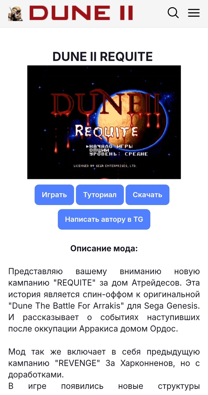 Хочу поделиться сайтом с модами Dune 2 the battle for arrakis smd. Отличительная особенность от других таких сайтов в возможности запуска прямо в браузере вашего устройства. Играть можно уже прямо сейчас, управление с геймпада, клавиатуры и сенсорного экрана.