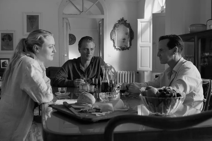 Зеллиан, в своей попытки переосмыслить самую известную историю о Рипли, никуда не торопится. Помимо шикарных неторопливых планов Южной Италии, которая нарочито показано в черно-белых цветах, ибо и этого с лихвой хватает, чтобы насладиться пейзажами, он чутко ощущает главного героя в исполнении несравненного Эндрю Скотта. Мы буквально покадрово будем ощущать, как его персонаж внутри будет подвергаться изменениям. Как каждый его последующий шаг, безусловно просчитанный где-то в голове, но не всегда реализуемый в реальности, станет сводить его с ума.