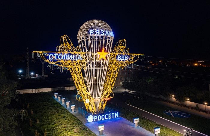 Опора выполнена в виде огромного парашюта и двух самолетов, с надписью «Рязань — столица ВДВ». Кроме того, вокруг — благоустроенная зона с информационными стендами. Вечером объект подсвечивается 28 мощными светильниками.
