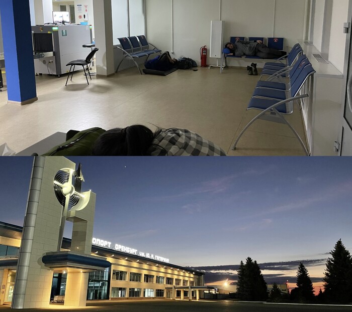 И вот мы прилетаем в Оренбург. На часах около 4х утра, стопить ещё рано из-за темноты, и надо беречь силы. Двое из нас разложили спальники прям в аэропорту, а я и четвертая наша героиня не могли уснуть и обсуждали детали похода.