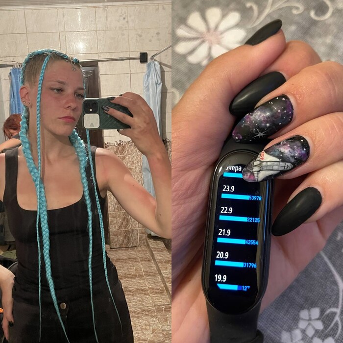 А вот, сколько шагов мы прошли за это время: в последнюю ночь почти 54 тысячи! (Тут можете ещё и маникюр заценить, полностью нарисованный моим мастером вручную по снимку Бурана. И нет, длинные ногти никак мне не мешали.)