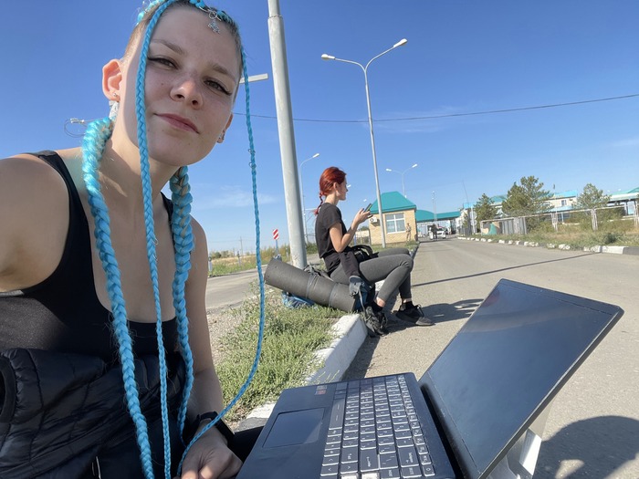Пока мы прошли границу с Казахстаном, наступило время моей работы. Да, я ещё и работала в пути, так как отпуск взять на тот момент не могла и ограничилась отгулами. Работать нужно было до вечера, а потом уже только после выхода из степи. Ну и да, шутка про "работаю на трассе".