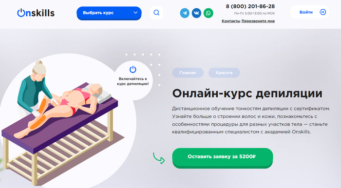 Депиляция воском от Onskills.ru— лучшая обратная связь от преподавателей.