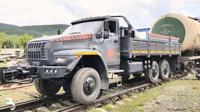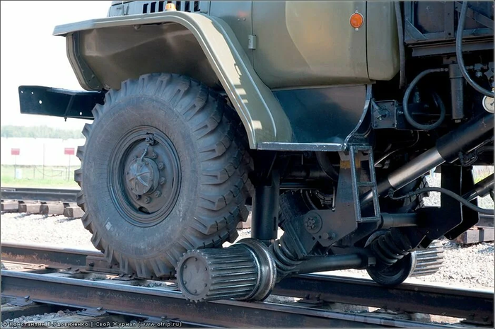 Урал-4320 на комбинированном ходу железнодорожных войск.