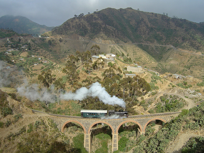 Железная дорога Эритреи просто похожа на действующий музей под открытым небом, подвижной состав преимущественно старинный узкоколейный итальянский.