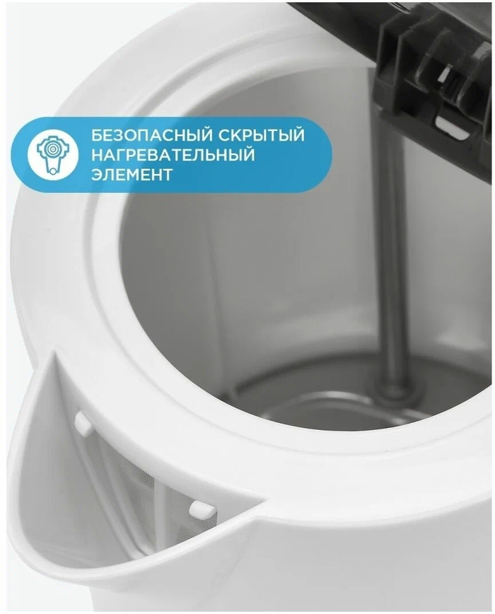 Автоотключение: Чайник самостоятельно прекращает свою работу сразу же после достижения точки кипения, что защищает его от перегрева и возможного выхода из строя.