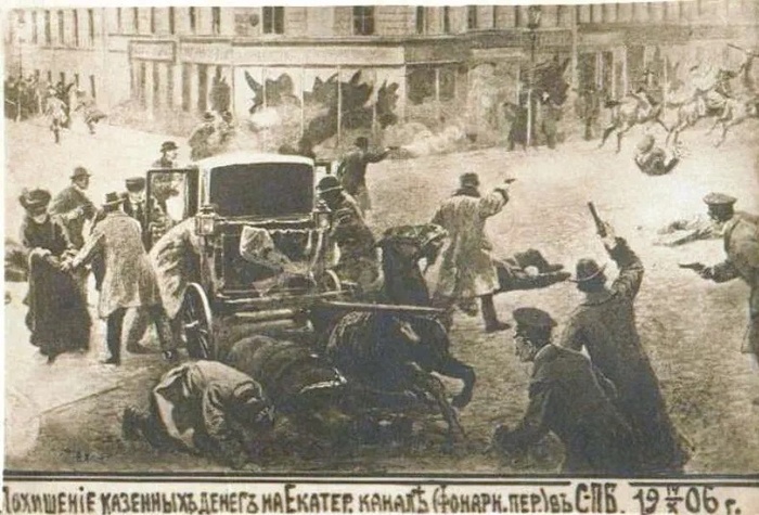 Во время революции 1905-07 годов практически все революционные партии прибегали к так называемым экспроприациям. В широком смысле экспроприацией называют насильственное изъятии собственности, этим может заниматься и государство. В контексте этой статьи экспроприацией называется изъятие собственности в пользу революционных организаций. Экспроприации для революционеров имели двойную цель, во-первых, пополнение партийной казны, ведь революция дело дорогое, во-вторых, как расшатывание политического порядка, против которого они боролись.
