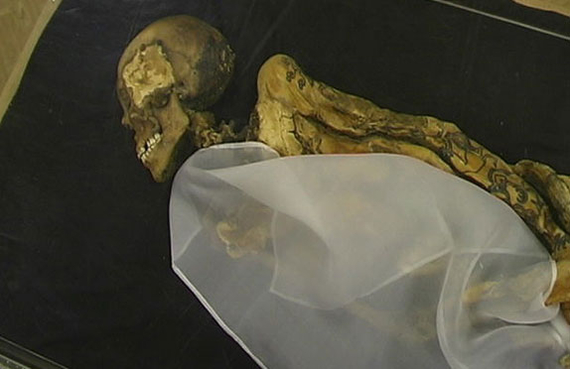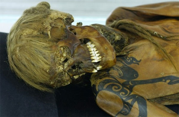 Одна из самых знаменитых археологических находок XX века - замороженное погребение Алтайской принцессы или принцессы Укока, по названию плоскогорья в Горном Алтае, где ее обнаружили. "Возраст" мумии 2,5 тысячи лет. Благодаря природной морозильной камере до нашего времени сохранилась органика - все содержимое захоронения найдено в том виде, в каком было оставлено в древности. Особенно привлекли внимание татуировки мумии. После пазырыкских находок стало особенно ясно, что наколки характерны буквально для всего древнего мира.