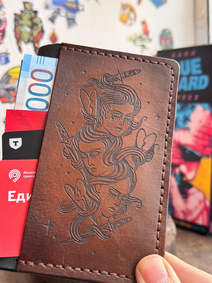 Материалы: Кожа растительного дубления. Кожа крейзи хорс. Акриловые краски. Вощеная нить.