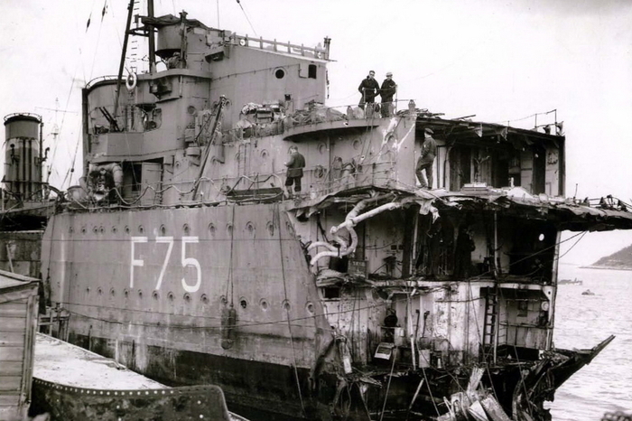 Эсминец «Беспощадный» в 1943 году имел тактический номер 17, водоизмещение: 2402 т. Экипаж: 236 чел