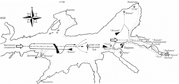 В два часа ночи с эсминцев были замечены немецкие самолёты-разведчики. Командиру немедленно доложили о том, что корабли обнаружены. Так думали наши моряки.
