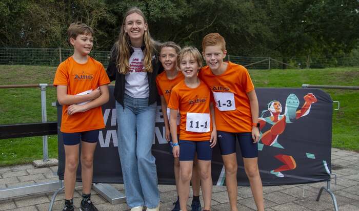 После прошлогоднего Чемпионата Мира в Будапеште, где у Фемке Бол два золота, в её родном Амерсфоорте на стадионе Алтис также прошло её чествование с участием властей города. Да, там как бы два клуба в одном. В оранжевых футболках Алтис, в голубых Триатлон. Написал, триатлоном Фемке тоже занималась. Дети с номерами, потому что в честь Фемке они провели эстафету 4х400 метров.