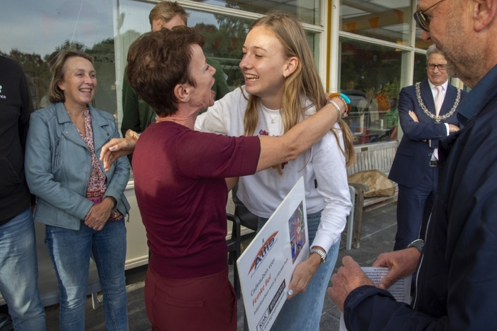 Токийская Олимпиада 2020 года прошла, напомню, в 2021 году, и там Фемке завоевала бронзу в беге на 400 метров с барьерами, уступив двум американкам. По возвращении её прокатили в открытом автомобиле (слева на снимке) по улицам Амерсфоорта- показать жителям местную знаменитость, после чего она пришла в свой родной спортклуб «Алтис», где пообщалась с детишками и тренерами.