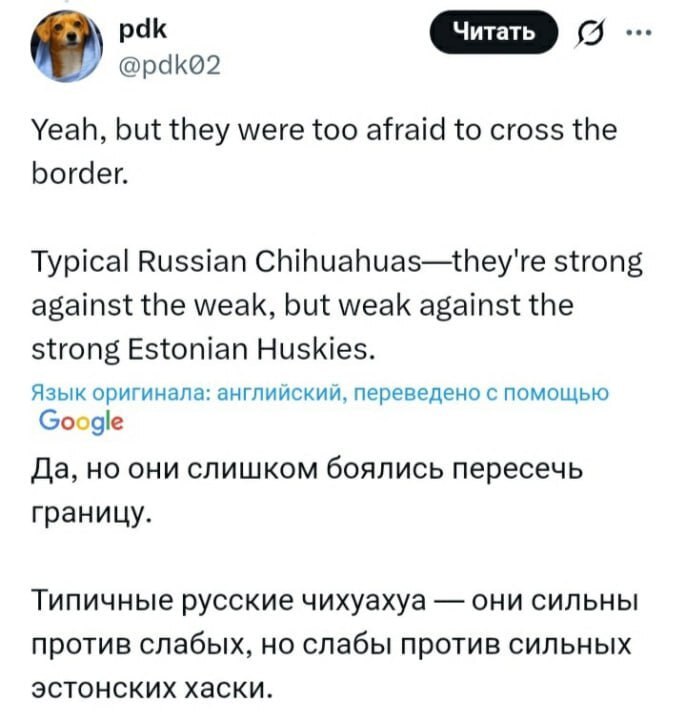 Эстонский полицейский видит на дороге автомобиль на российских номерах. Он машет палочкой. Машина останавливается на обочине дороги. Полицейский не торопясь идет к машине, и про себя вполголоса говорит: