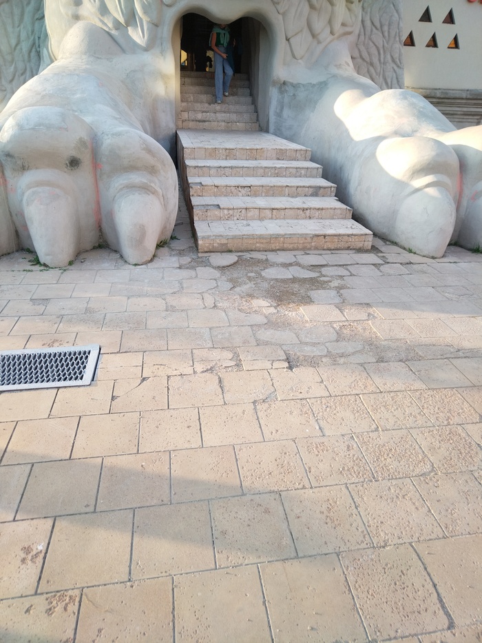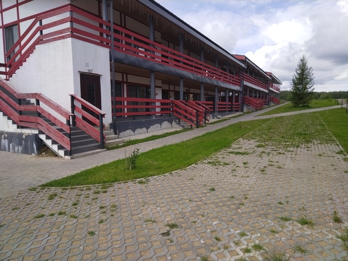 На данных фото вход в гостиницу. Первое, что начало бросаться в глаза-это состояние зданий и плиток. Все в трещинах, поросло травой. Место само по себе выглядит заброшенным. Это очень печально, ведь сама идея и концепция очень крутые.