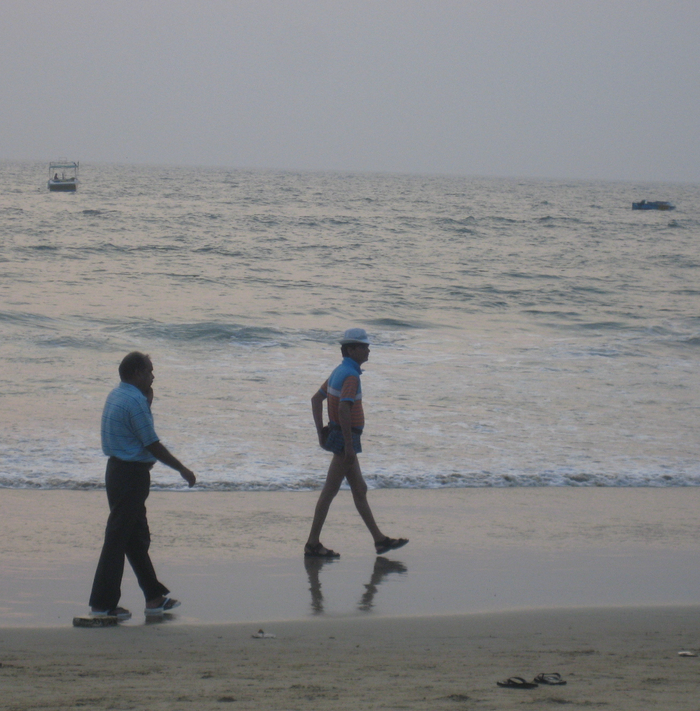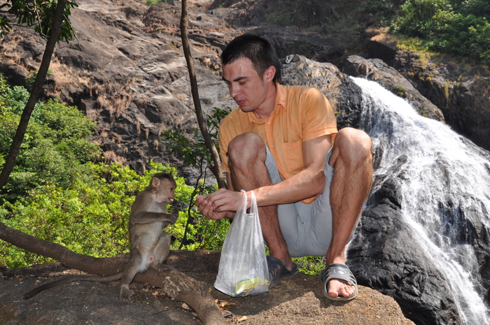 Однажды мы поймали таксиста и этот таксист сказал что теперь будет нашим на все время отдыха. Без разницы надо нам куда или нет, он будет ждать на с утра на своем авто. И правда. Каждое утро нам улыбался наш водитель. Он был очень спокойный и все время качал головой, как будто чем то расстроенный. Потом я вспомнил, что у них покачивания головой означает согласие, а тогда мне казалось, что вот он расстроен, но согласен. Водитель всё время включал нам индийские мантры которые длились как минимум по полчаса каждая. мотив там совершенно не менялся все эти полчаса. сначала было Прикольно а потом Конечно мы уже просили сменить заевшую пластинку. Музыка индийская очень весёлая ритмичная, танцевальная всегда по кайфу было послушать её. втянуться в эту атмосферу. Так вот про что я начал... как-то мы ехали вместе с ним и вдруг нас подрезает мотоциклист. водитель недовольно покачал головой и сказал что это индус. Я спросил В каком смысле индус? А ты кто? он говорит - А я гoанец. Я спрашиваю А как ты отличил его, что он индус? он говорит а он же чёрный! я чуть не расхохотался, потому что на мой взгляд они оба были абсолютно чёрными! как они находили градацию в этом чёрном цвете кожи мне абсолютно непонятно. Если ещё учесть что мотоциклист проскочил мимо нас очень быстро. Так вот Я хочу рассказать о том что люди штате Гоа совершенно отличаются от нас европейцев даже от тех же арабов. они всё время улыбчивые даже если они хотят тебе что-то продать А ты отказываешься это покупать., они не расстраиваются и также продолжают улыбаться. они со всеми здороваются по утрам, например. Я сначала думал, что это потому что они хотят что-то от меня. но когда со мной поздоровался полицейский, я понял что уж он то точно ничего не хочет от меня. Подозреваю что в самой Индии менталитет немного другой чем на Гоа. Тем более что они не одну сотню лет были отдельным государством. Так вот однажды мы взяли частную экскурсию у девушке на джипе. Я с Катей и две бабульки из Киева, работающие вместе в одной бухгалтерии. И эта наша гид Аня многое рассказала нам о ментальности гоанцев. Например совершить кражу они не могут. Это грех. Это значит испортить себе карму. Иначе после смерти переродятся в небогвесть кого. А вот если турист сам отдал тебе деньги или вещь, то это норм и даже хорошо. И по этому тут люди такие улыбчивые. Они знают, что надо радоваться жизни, чтобы при перерождении перейти на более высокую ступень. поэтому в гоа преступность крайне низка. Тут много курят гашиш, хоть это и запрещено, пьют в основном ром old monk, пиво king fisher.