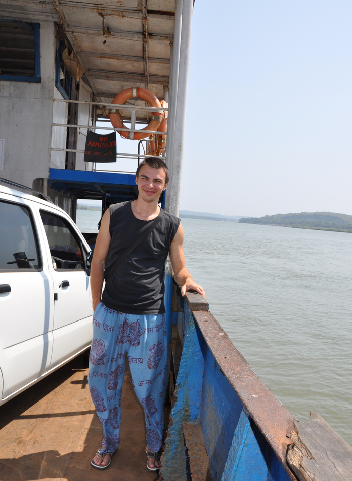 одним утром нас с Кэт как всегда возле отеля ждал наш водитель. ранее мы с ним объездили все известные пляжи северного Гоа: Арамболь, Бага, Мандрем, Анджуна и т.п. и тут нам водитель говорит, что вы все куда-то не туда ездите. хотите я покажу вам красивый пляж с белым песком и соснами? мы согласились и он привез нас на Парадайзбич. я потом долго искал на карте и в интернете это место, но долго не мог найти. помню только что мы пересекали на пароме какую-то реку и престарелый паромщик неожиданно включил песню Аллы Пугачевой «Седой Паромщик»! (как он узнал, что мы русские??))) это было очень неожиданно и сильно подняло настроение. Сам паромщик сидел довольный произведенным на нас эффектом и улыбался.
