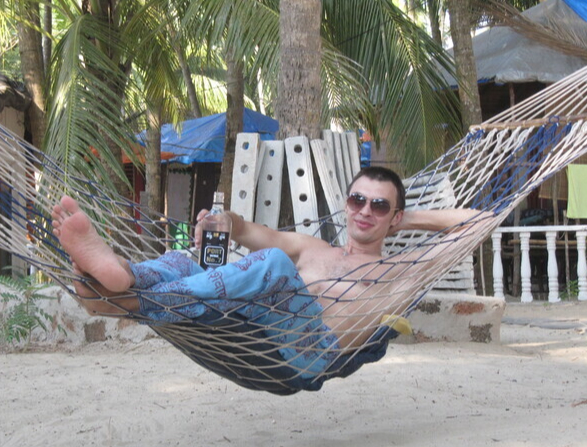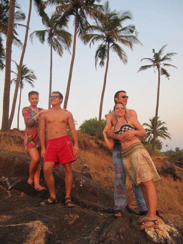 В аэропорту выяснилось удивительное. Лёха У., с кем мы работали еще на СИА, и которого я привел к себе на работу, оказался тоже в аэропорту со своей девушкой и мы одним рейсом летим в ГОА!!! такое совпадение бывает крайне редко. Праздновать начали уже в аэропорту. В самолете празднование продолжил уже весь самолет. Лететь предстояло долго. вскоре уже пол самолеты были пьяны. Ульянов уже курил электронную сигарету прямо в салоне! тогда они только появились и это было в порядке вещей. –--------- Первая ночь, украли сумку с деньгами, документами и ключами от номера! После того как бросили чемодан, пошли здороваться с океаном. Между тем стремительно темнело. Пока мы дошли до моря, отбиваясь от индусов желающих срочно "познакомиться", наступила ночь. Кромешная ночь. Мне как городскому человеку непривычно, что на улице может быть так темно, хотя на небе были звезды и светил полумесяц. Так странно! Полумесяц был совсем другим!!! Он лежал на спине! Я никогда раньше не видел, чтобы месяц лежал на спине! Спустившись с небес на землю, мы срочно решили искупаться в океане! Мы с Катюхой никогда раньше не плавали в океане! Разделись, а сумку, в которой были все деньги, ключи от номера и паспорт, я тщательно спрятал в стопку лежаков. Вокруг была такая тьма, что никто бы не смог увидеть куда я прячу - подумал я. Вода была теплая. Мы счастливо поплавали, и тут услышали голоса ! Сэр, тут нельзя купаться! Вышло два индуса. У одного был гаишный жезл. А у второго брюки. Они нам стали говорить, что ночью купаться запрещено. Это опасно, т.к. ночью к берегу приплывают разные морские животные, скаты и т.п некоторые из которых мошут укусить или травмировать. Мы им говорим ок, не выпрос, мы уже вышли. Они такие: нет, с вас терь штраф. Я грю, схрена ли? Он говорит: потому что я полицейский. Я в лицо ему рассмеялся. Говорю -жезл гаишника не значит, что ты полицейский. Досвидос. Но не тут то было! Я вижу, что индус знает что-то. Тут выясняется очень странная история. Я одеваюсь, пытаюсь нащупать свою сумку в лежаках, а ее там нет...!!!!! Ищу, точно знаю, что он там должна быть, но ее нет. Понятно, что это он ее взял. Но как!!!!??? Как он в это кромешной темноте видел куда я ее положил? Вторй вопрос - почем украв мою сумку он не ушел просто с ней? зачем здесь этот цирк с жезлом и полицейскими? Почему он просто не забрал себе всё и деньги и сумку и документы. Тут мне уже стало не до смеха я спросил его что он хочет? он ответил - штраф заплати мнe. Я говорю: Хорошо Заплачу тебе штраф. Давай мне мою сумку. Он принёс мою сумку и передал мне. Я отсчитал ему сумму оговоренную ранее и потом долго думал как мы так лоханулись в первый же час и почему он не забрал просто всю сумку и не ушел. потом мы познакомились с девушкой, которая жила уже давно в гоа и работала гидом на фрилансе. Она то как раз и объяснила нашу ментальную разницу между гоанцами и европейцами. Это надо подчеркнуть.