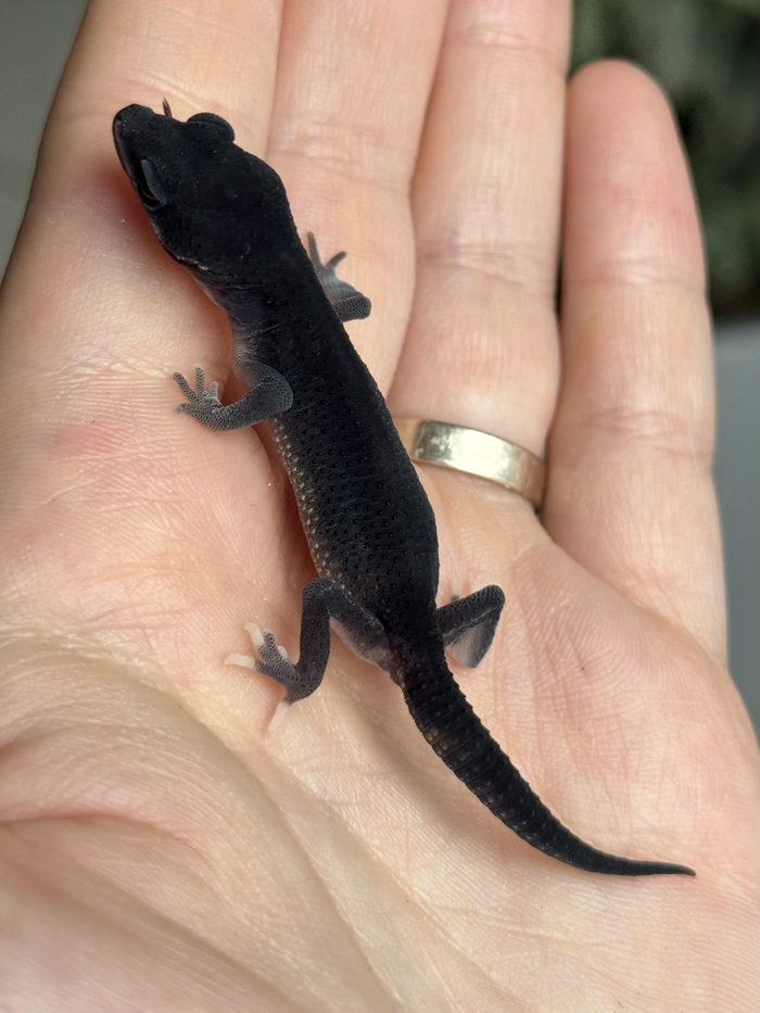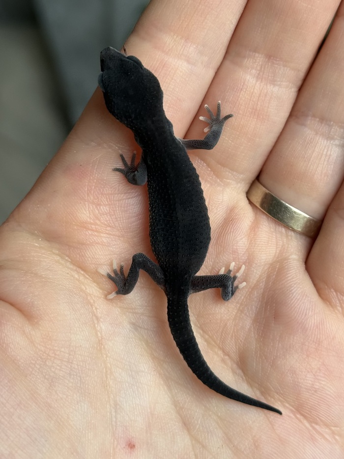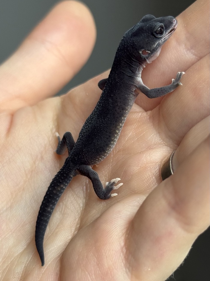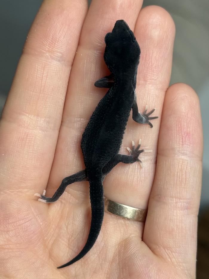 На фото дальше чистая работа с селекцией. Даже у полностью черных эублефаров (что уже достаточно сложно получить) будет белый живот с минимальных закрасом по бокам, но этот корейский заводчик сумел удивить, как минимум, меня