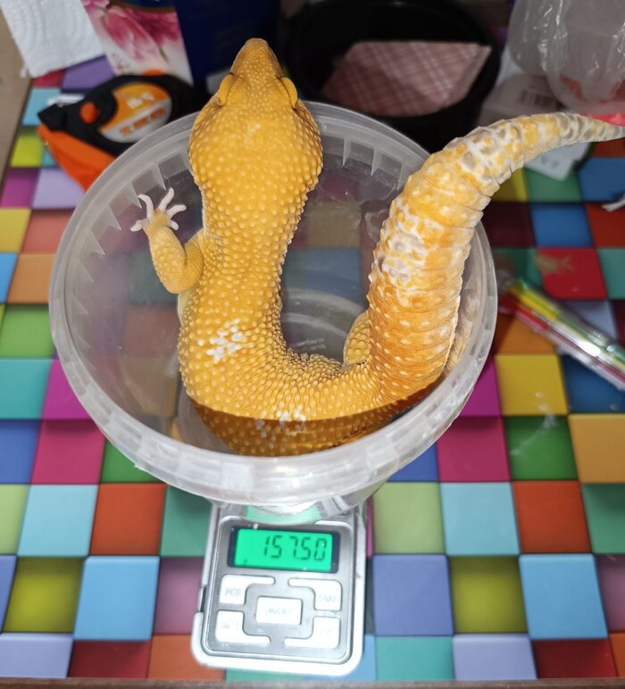 В настоящее время самый крупный эублефар - особь по имени Лось Рона Тремпера, которая весит 156 грамм и в длину достигает 28.5 см.