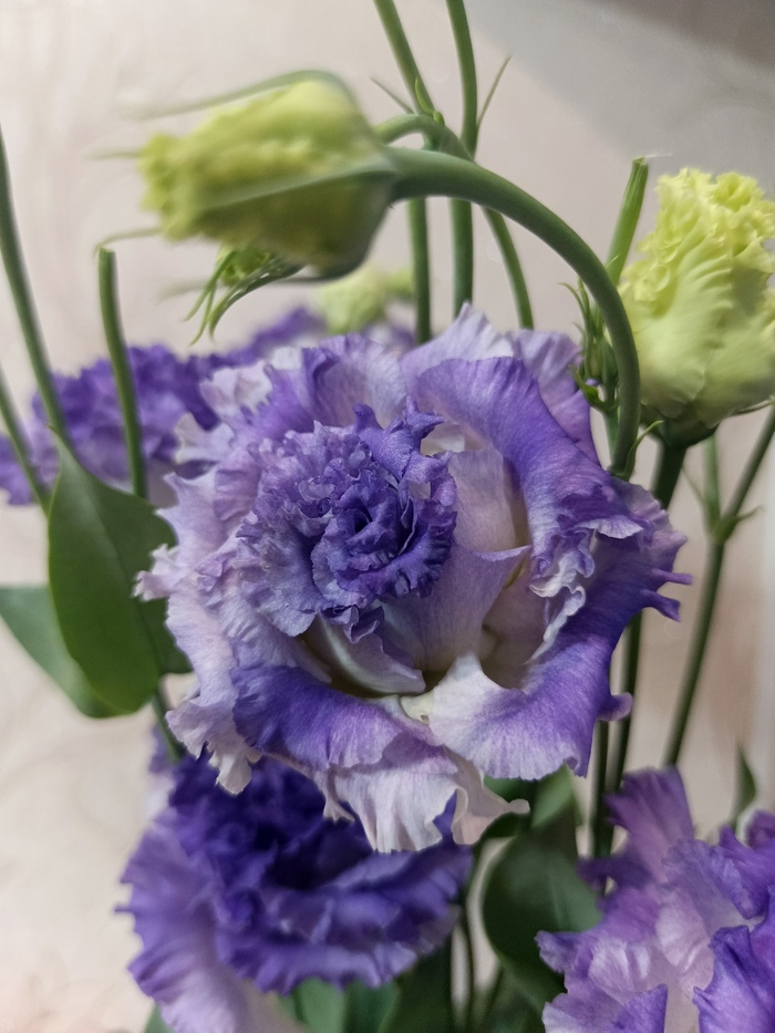 Цветки диаметром 5-8 см. Лизиантус может иметь махровые или простые цветки разных тонов: розовые, сиреневые, белые, фиолетовые, однотонные или с контрастной каймой.