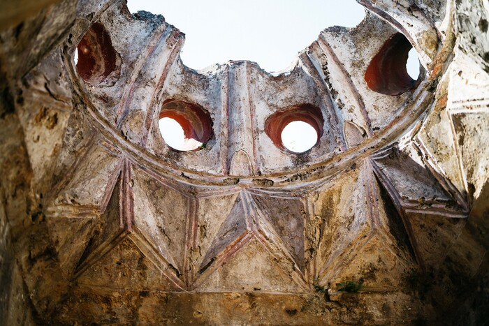 Купола в аварийном состоянии. Из десяти первоначальных осталось пять полуразрушенных.