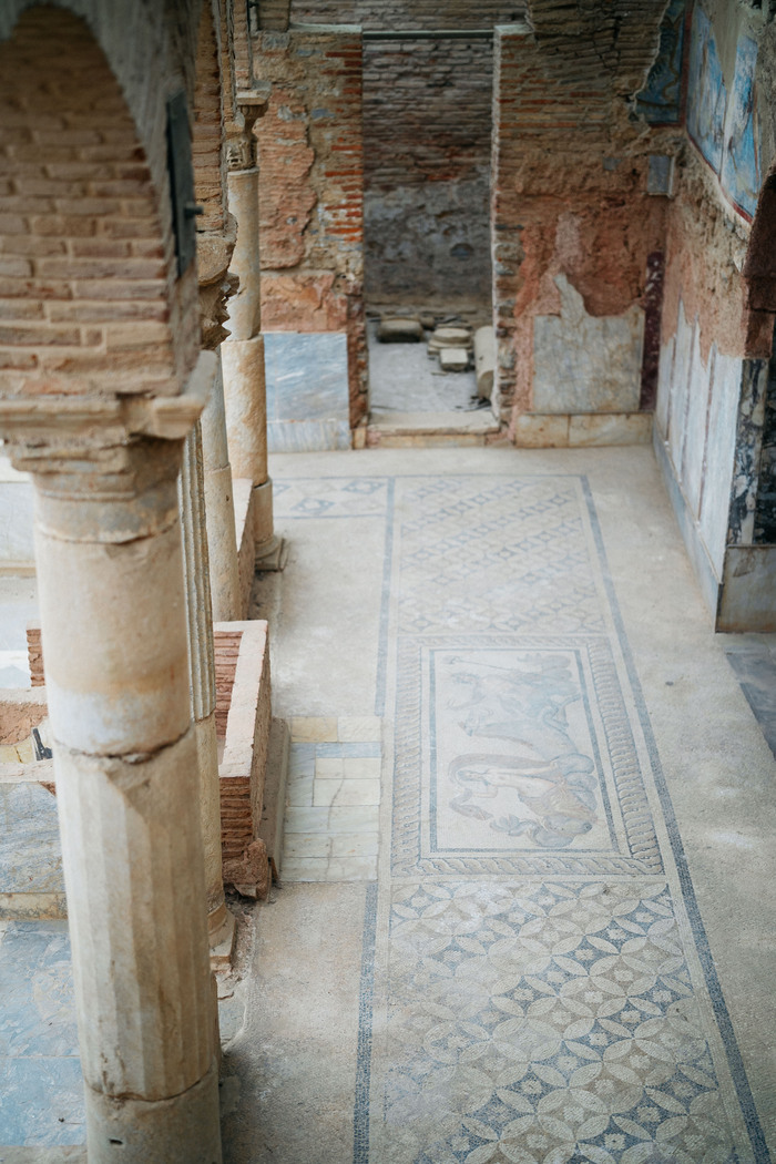 В некоторых местах есть мозаичные полы, заляпанные для «наилучшей сохранности» по доброй турецкой традиции.