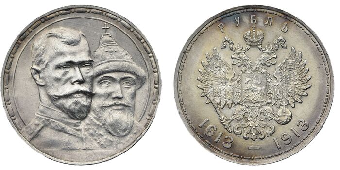 В 1913 году в честь 300-летия царствования Дома Романовых был отчеканен рубль, тираж которого составил полтора миллиона экземпляров.