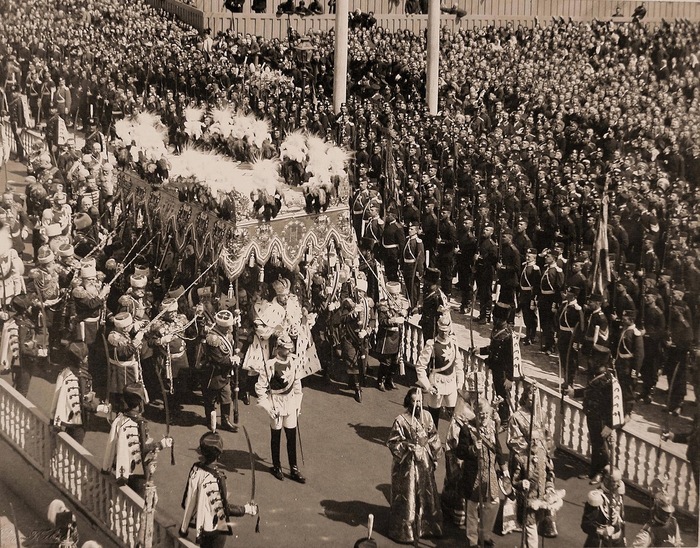 Это была последняя коронация в истории России и самая масштабная из всех. На Ходынском поле были организованы народные гуляния с бесплатной раздачей угощений. Произошла давка, в результате которой по разным сведениям погибло от 2 до 4 тысяч человек.