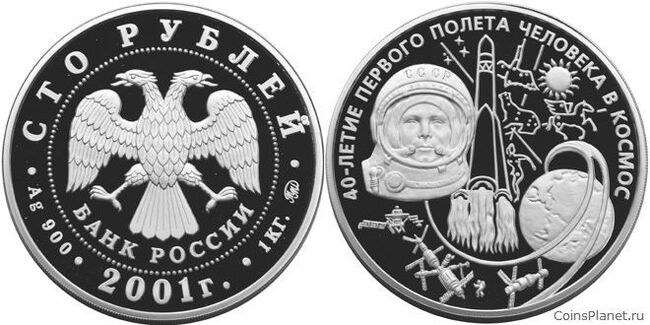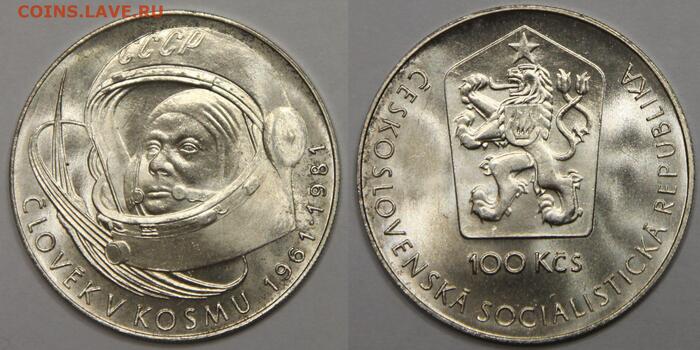 Чехословакия 100 крон, 1981 20 лет первого полета человека в космос, Юрий Гагарин