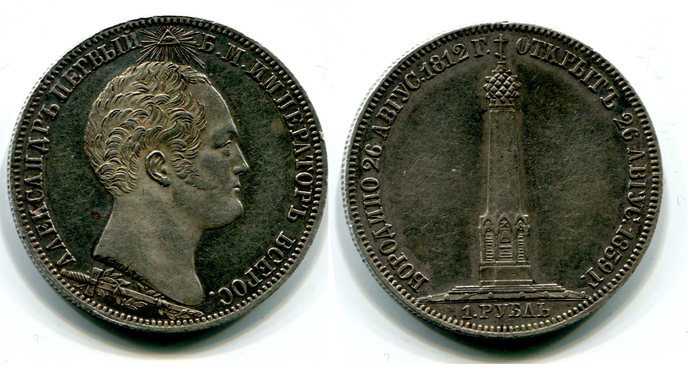 В 1839 году был отчеканен рубль в память открытия памятника-часовни на Бородинском поле.