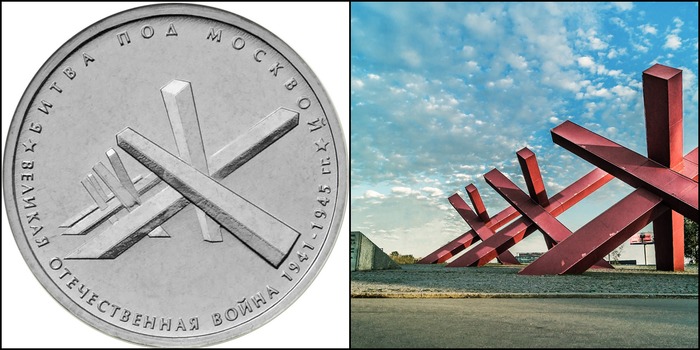 Изображение противотанковых «ежей» — Монумента защитникам Москвы
