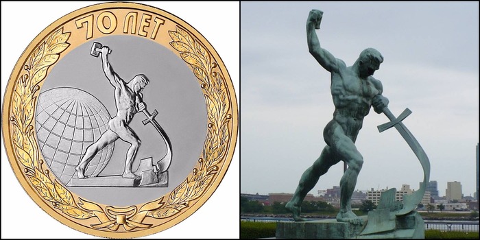Изображение скульптуры Е. С. Вучетича «Перекуём мечи на орала»