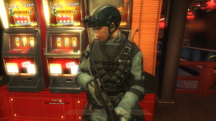 Но главное в Vegas — не оружие, а взаимодействие с командой. Система команд сделана максимально интуитивно: всё работает буквально на одну кнопку. Одним нажатием можно отправить бойцов вперёд, занять позицию за укрытием или подготовиться к штурму. У дверей доступен выбор тактики — аккуратно открыть, закинуть гранату или просто вышибить дверь взрывом. Более того, у них есть два стиля поведения: тихий режим, когда они стараются действовать скрытно, и штурмовой, где начинается настоящая буря свинца и адреналина. Напарники не железные и могут конечно пасть , но шприц с адреналином поможет поставить бойца на ноги , если его конечно не взорвали, на Келлера эта особенность не распространяется.